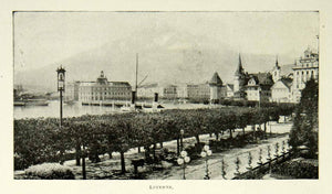 This is an original 1902 black and white halftone print of the city of Lucerne in Switzerland.