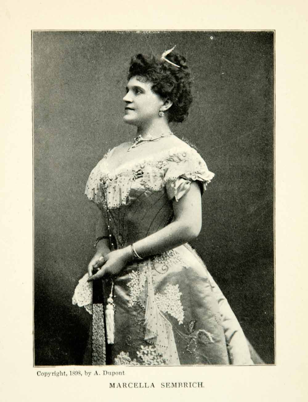 This is an original 1902 black and white halftone print of a portrait of Polish opera singer, Marcella Sembrich, (born Prakseda Marcelina Kockanska), who sang at the New York Metropolitan Opera and the Royal Opera House, Covent Garden, London, England during her career.