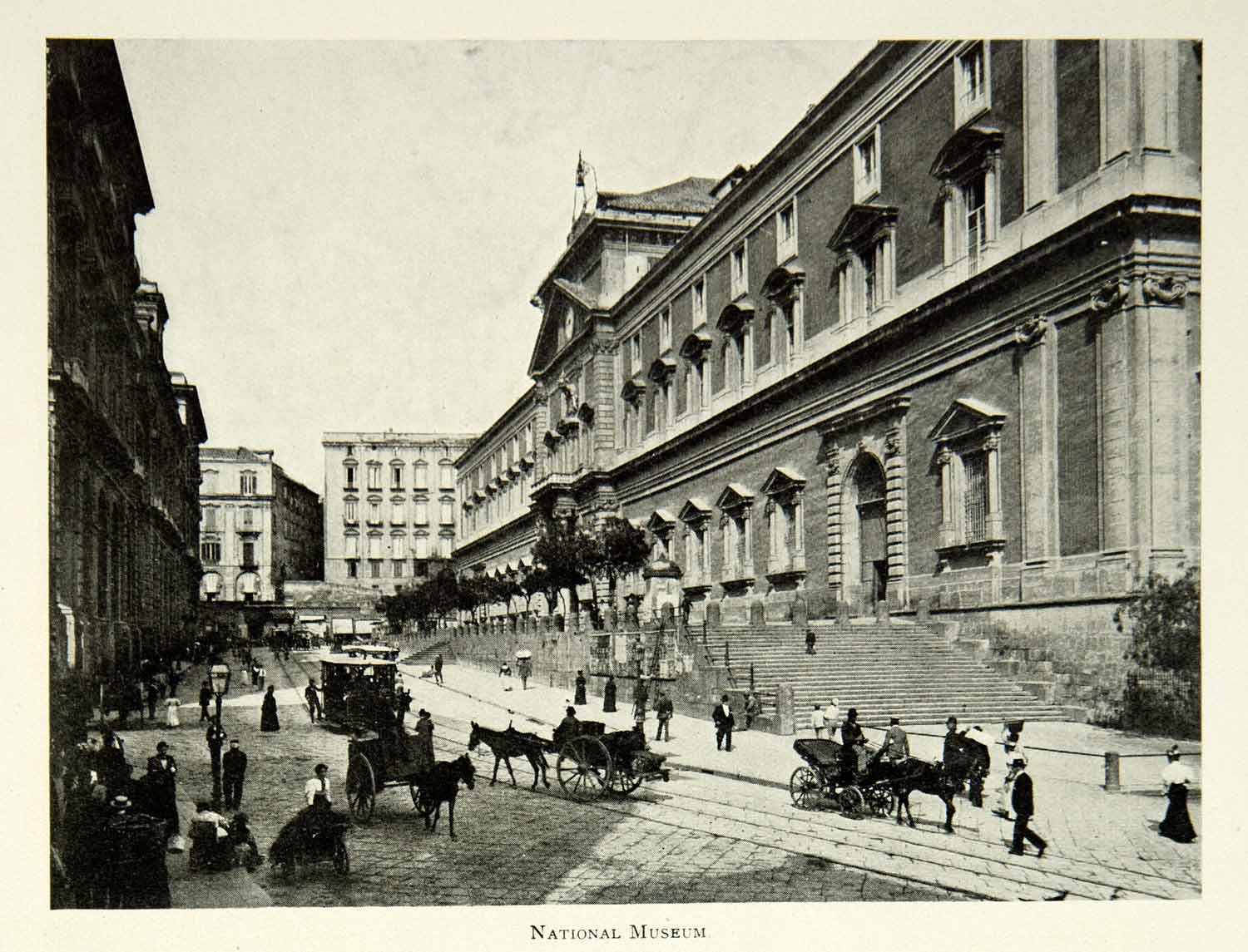 This is an original 1902 black and white halftone print of the Naples National Archaeological Museum (Museo Archeologico Nazionale di Napoli) in Naples, Italy.