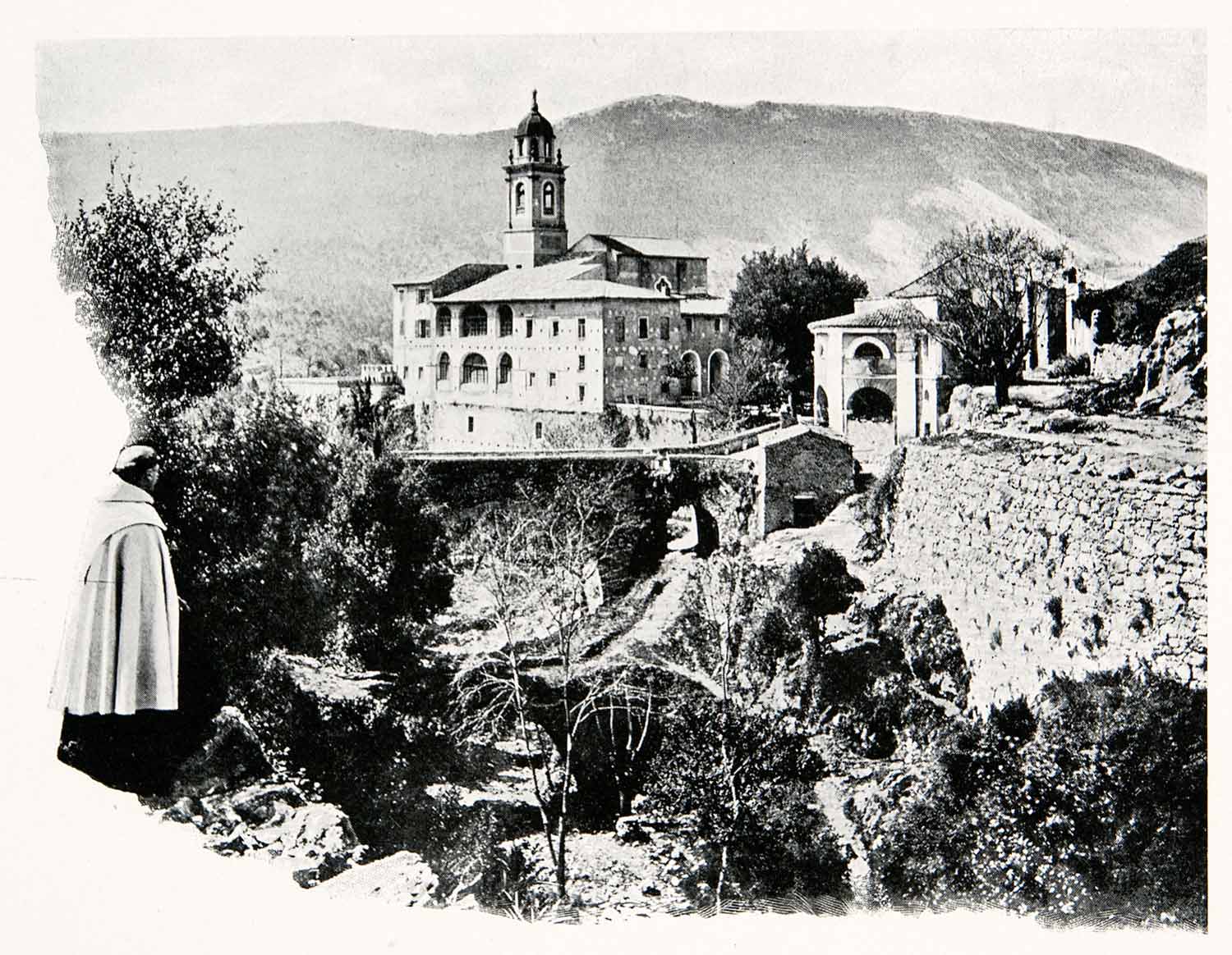 This is an original 1902 black and white halftone print of Notre Dame de Laghetto in the French Riviera.