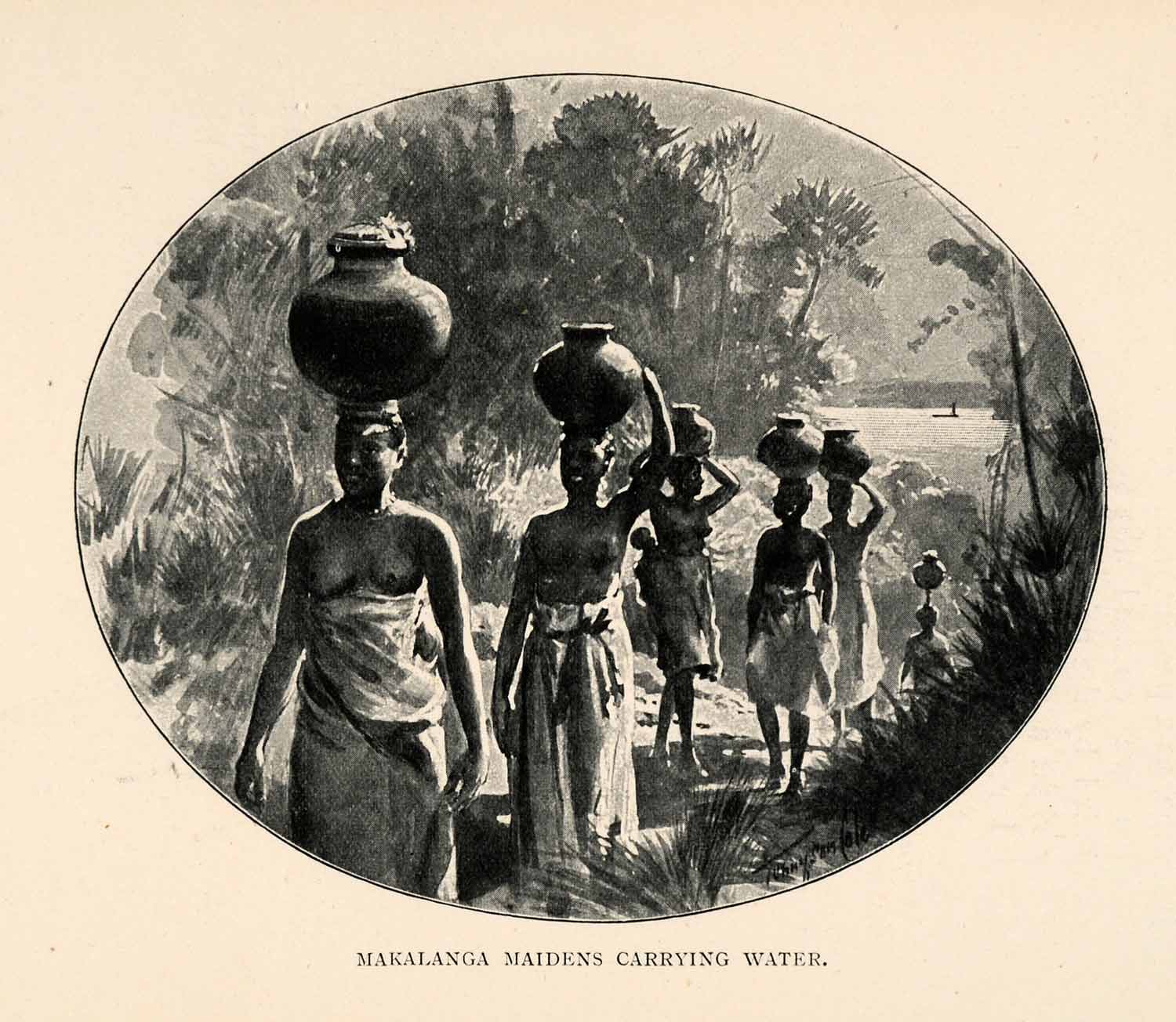 1902 Print Nude Makalanga Maidens Water Jugs Costume Native Africa Tennyson XGT6