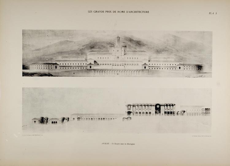 This is an original, circa 1902, print of an architectural drawing from the Prix de Rome d'Architecture.