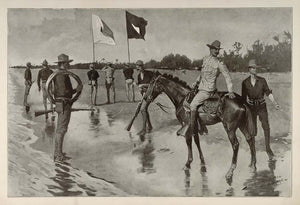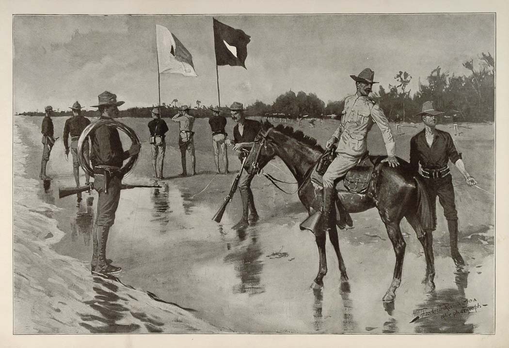 1902 Print Remington Art Army Soldiers Officer Flag Telegraph Line American West