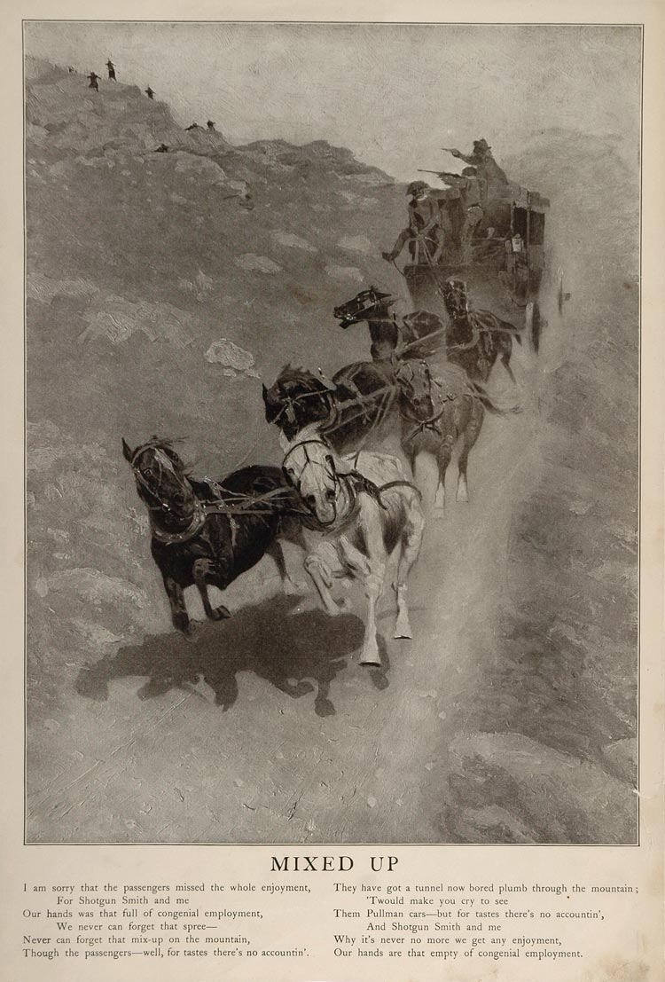 1902 Print Remington Art Stagecoach Attack Owen Wister Poem American Old West