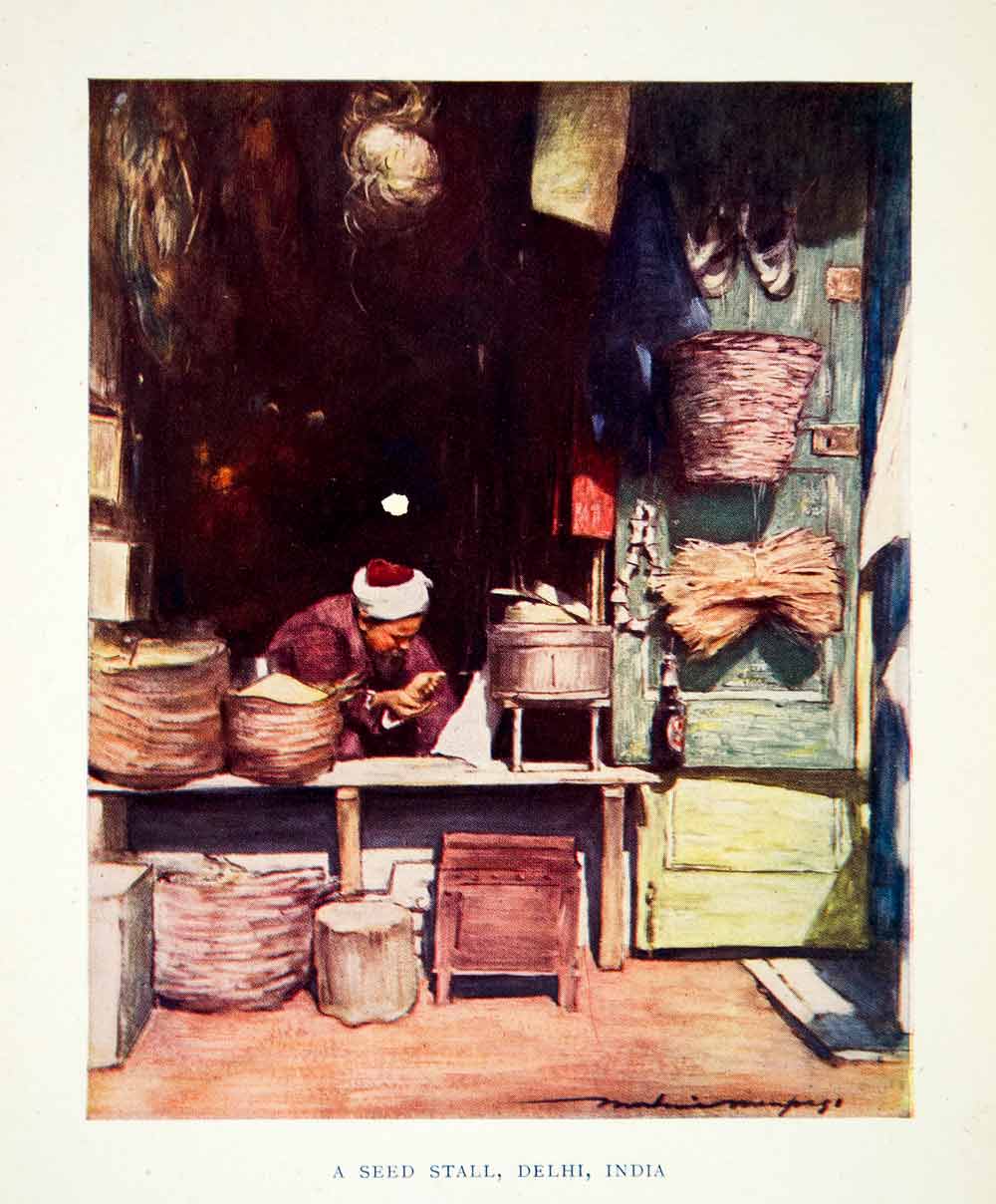 1902 Print Seed Stall Booth Market Delhi India Portrait Buy Sell Mortimer XGYC6