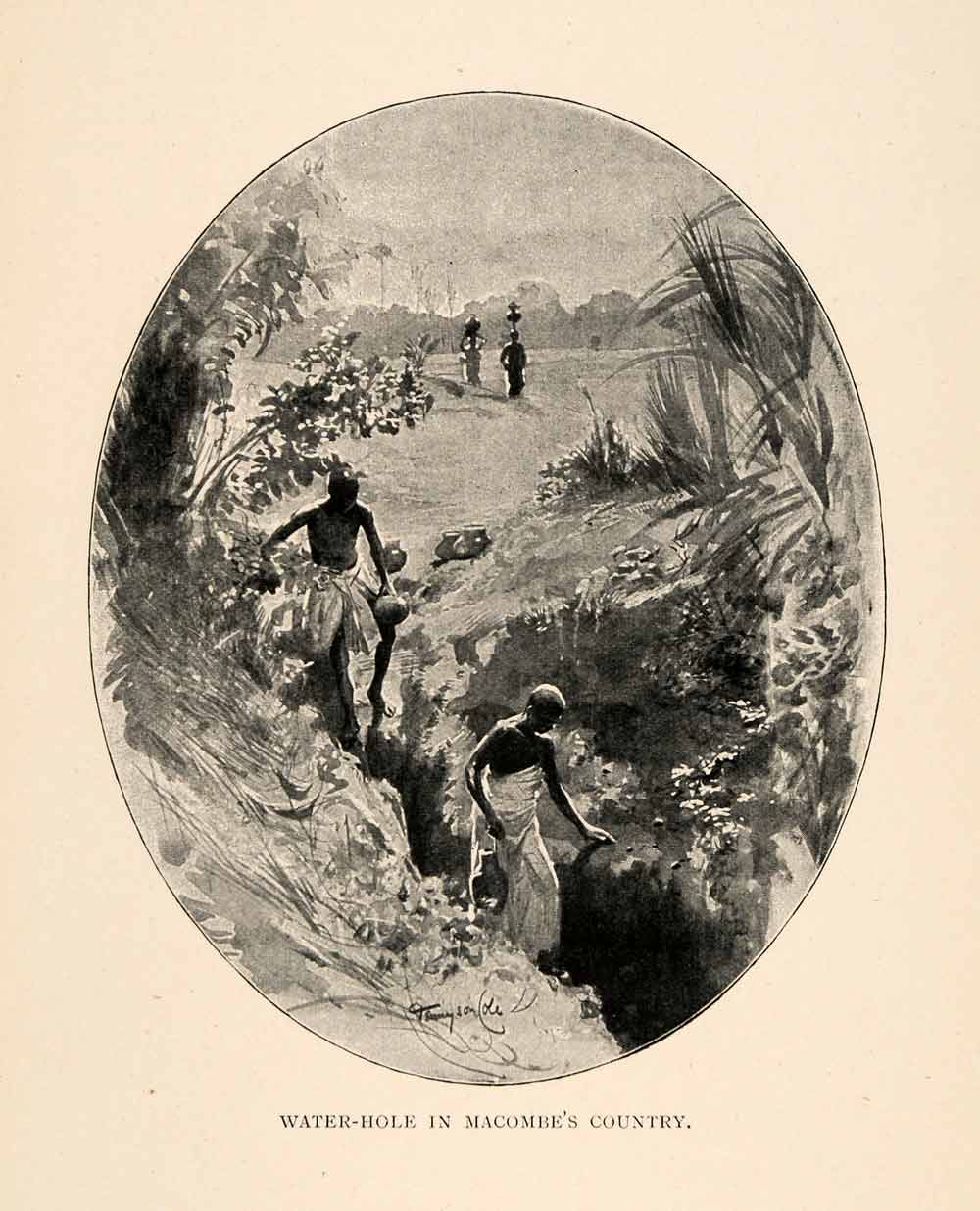 1902 Print Tennyson Cole Africa Water Hole Macombe Jug Jungle River Path XGT6
