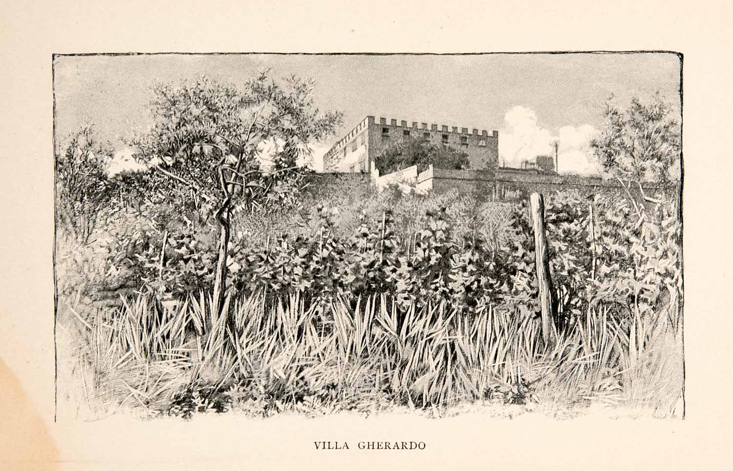 This is an original 1902 black and white halftone print of the "Villa Gherardo," Florence, Italy.
