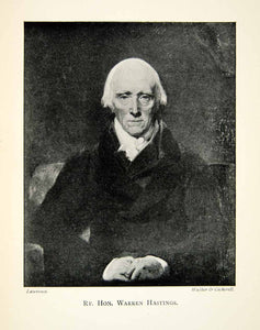 This is an original 1902 black and white halftone print of Warren Hastings (1732-1818) who was the first Governor-General of India from 1773-1785.