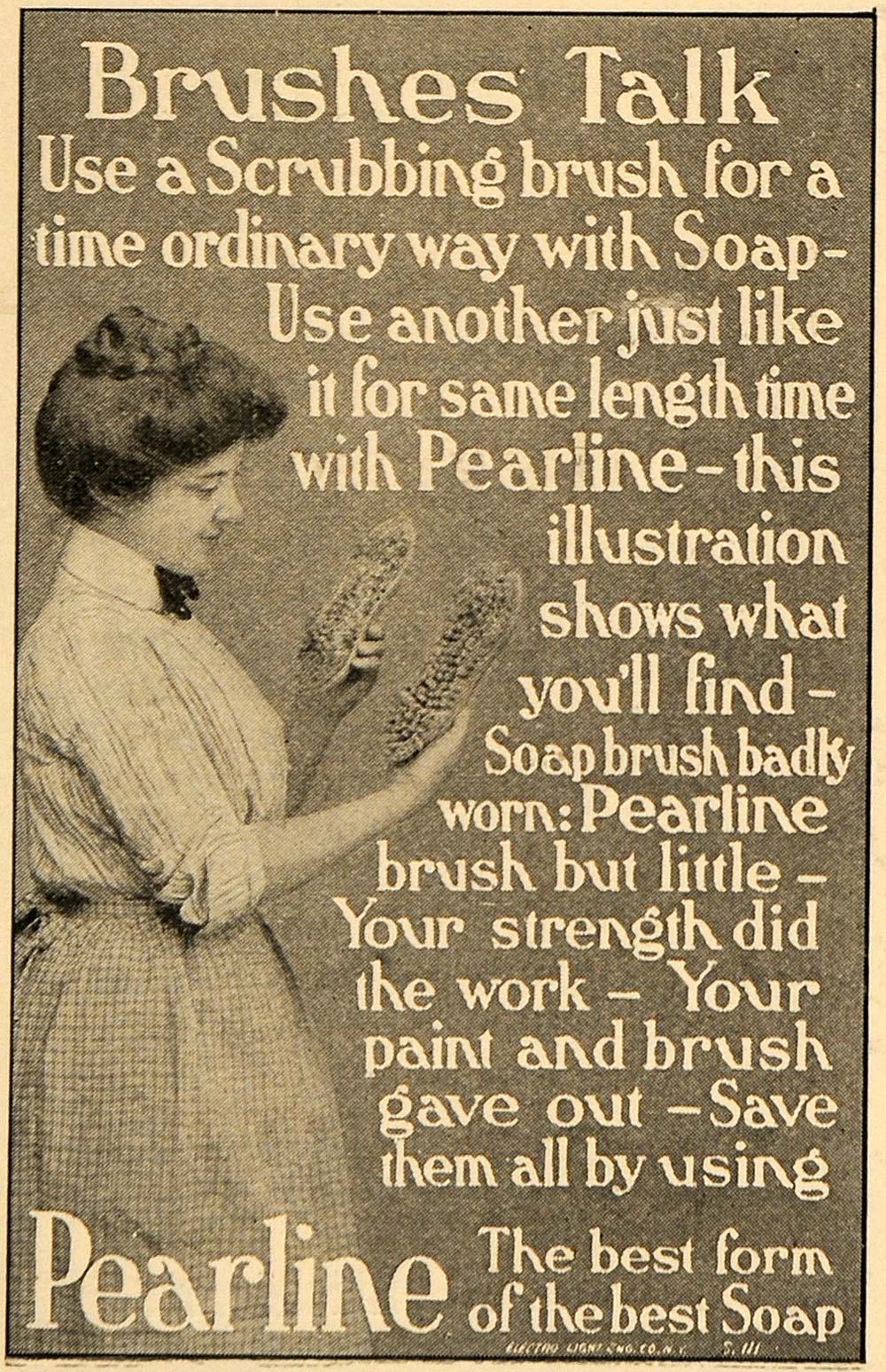 1903 Ad Woman James Pyle Pearline Hygiene Washing Soap Detergent Brush TIN5