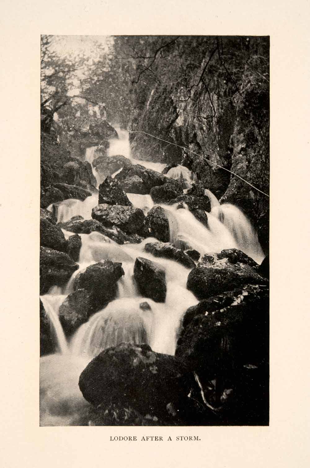 This is an original 1903 black and white halftone print of Lodore Falls in Cumbria, England.