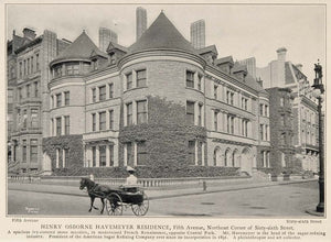 This is an original 1903 halftone print of the mansion of Henry Osborne Havemeyer on Fifth Avenue at 66th Street in New York City. Please note that there is printing on the reverse.