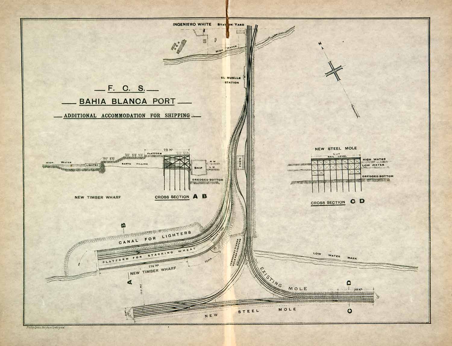 This is an original 1903 monochrome lithograph map on vellum titled, "Bahia Blanca Port."