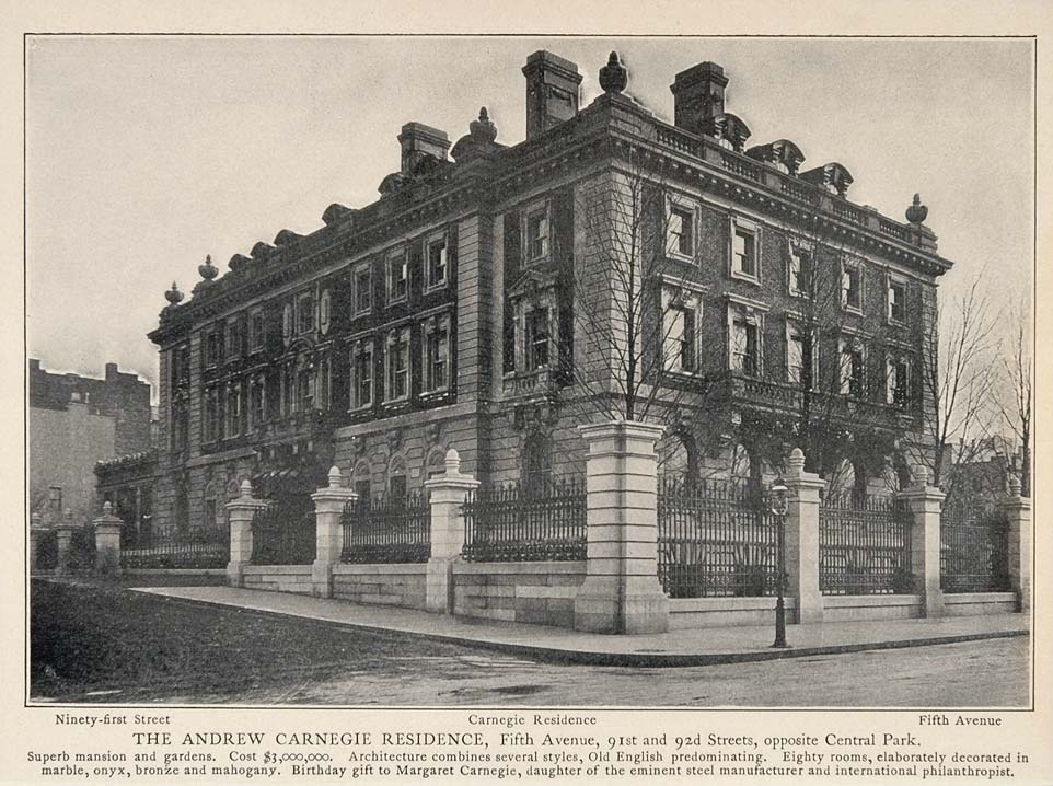 This is an original 1903 halftone print of the mansion of Andrew Carnegie on Fifth Avenue between 91st and 92nd Streets in New York City. Please note that there is printing on the reverse.