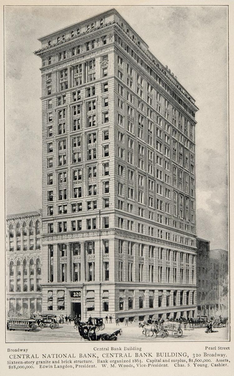 This is an original 1903 halftone print of the Central National Bank Building at 320 Broadway in New York City. Please note that there is printing on the reverse.