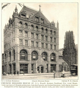This is an original 1903 halftone print of the Church Missions House (P. E.) on Fourth Avenue at 22nd Street in New York City. Please note that there is printing on the reverse.