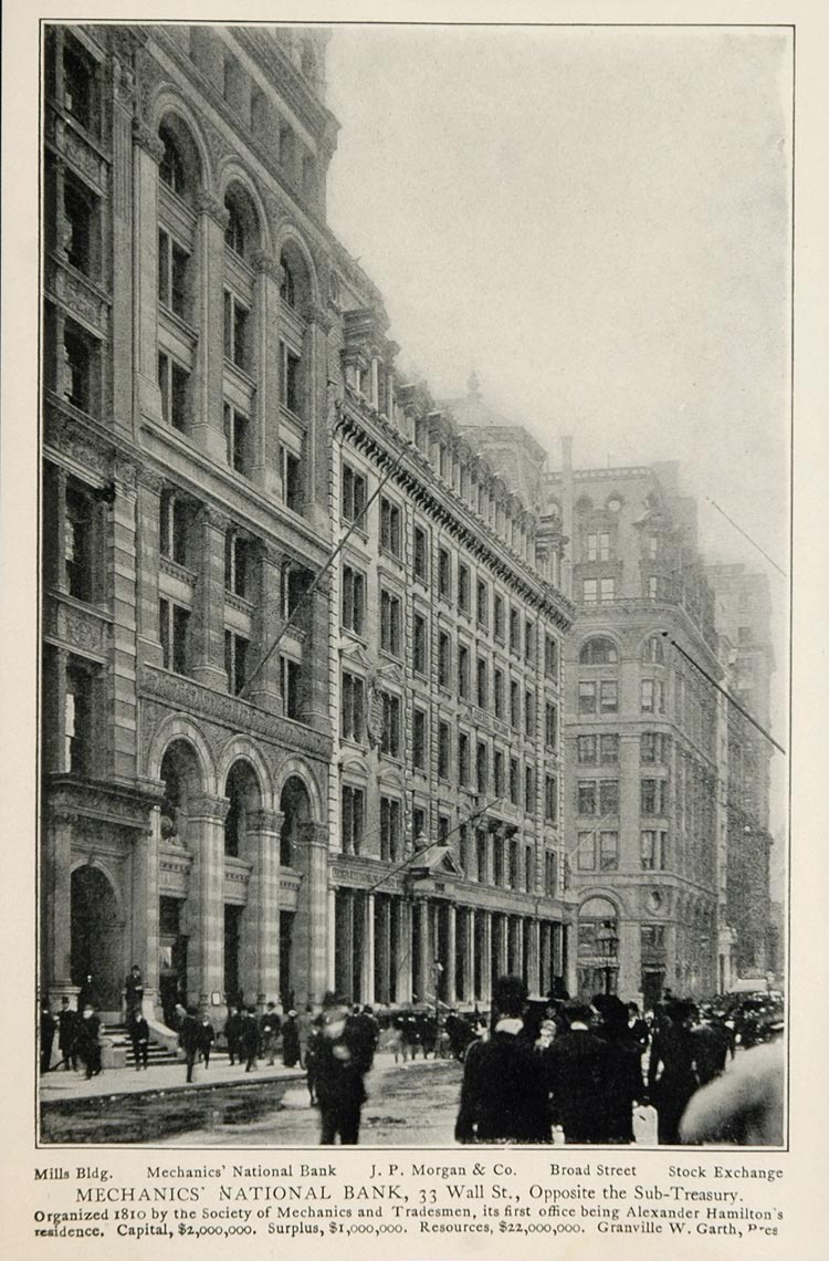 This is an original 1903 halftone print of the Mechanics' National Bank at 33 Wall Street in New York City. Please note that there is printing on the reverse.