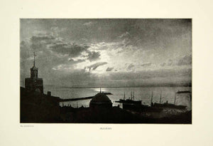 This is an original 1903 black and white halftone print of a sunset on the port city of Algiers, in Algeria.