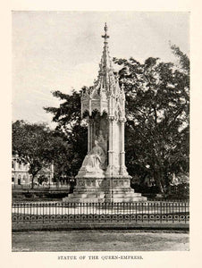 This is an original 1903 black and white halftone print of a historical image of the statue of the Queen Empress in Mumbai (Bombay), India.