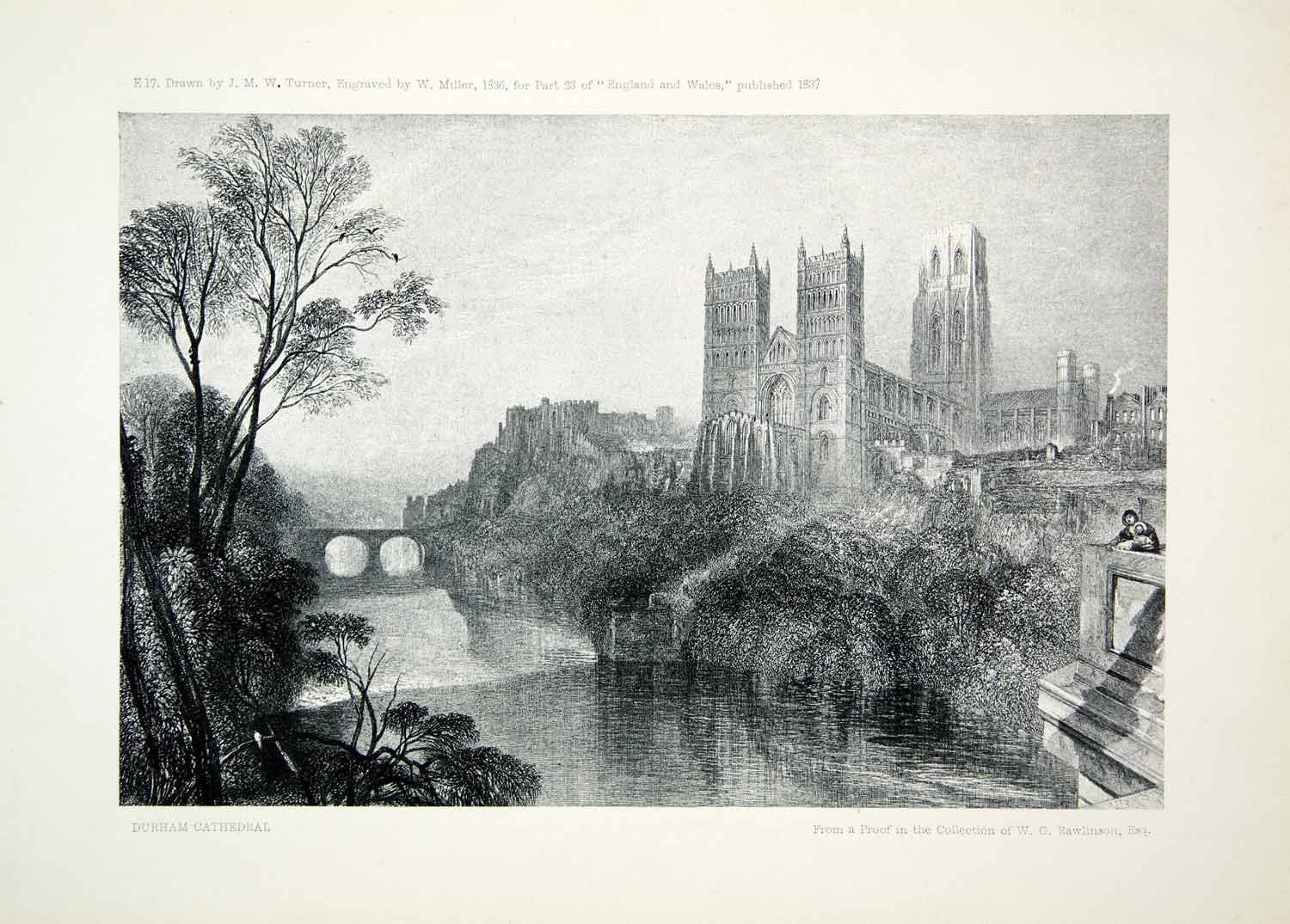 1903 Print Durham Cathedral England Church River Wear Mallord Turner Norman XAV9