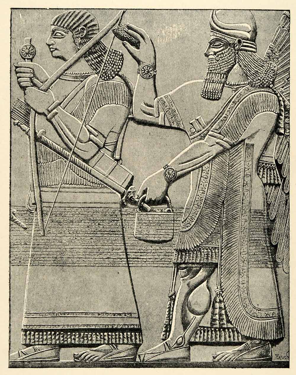 This is an original 1903 halftone print of a winged figure holding in his hand the spathe of the male date-palm.