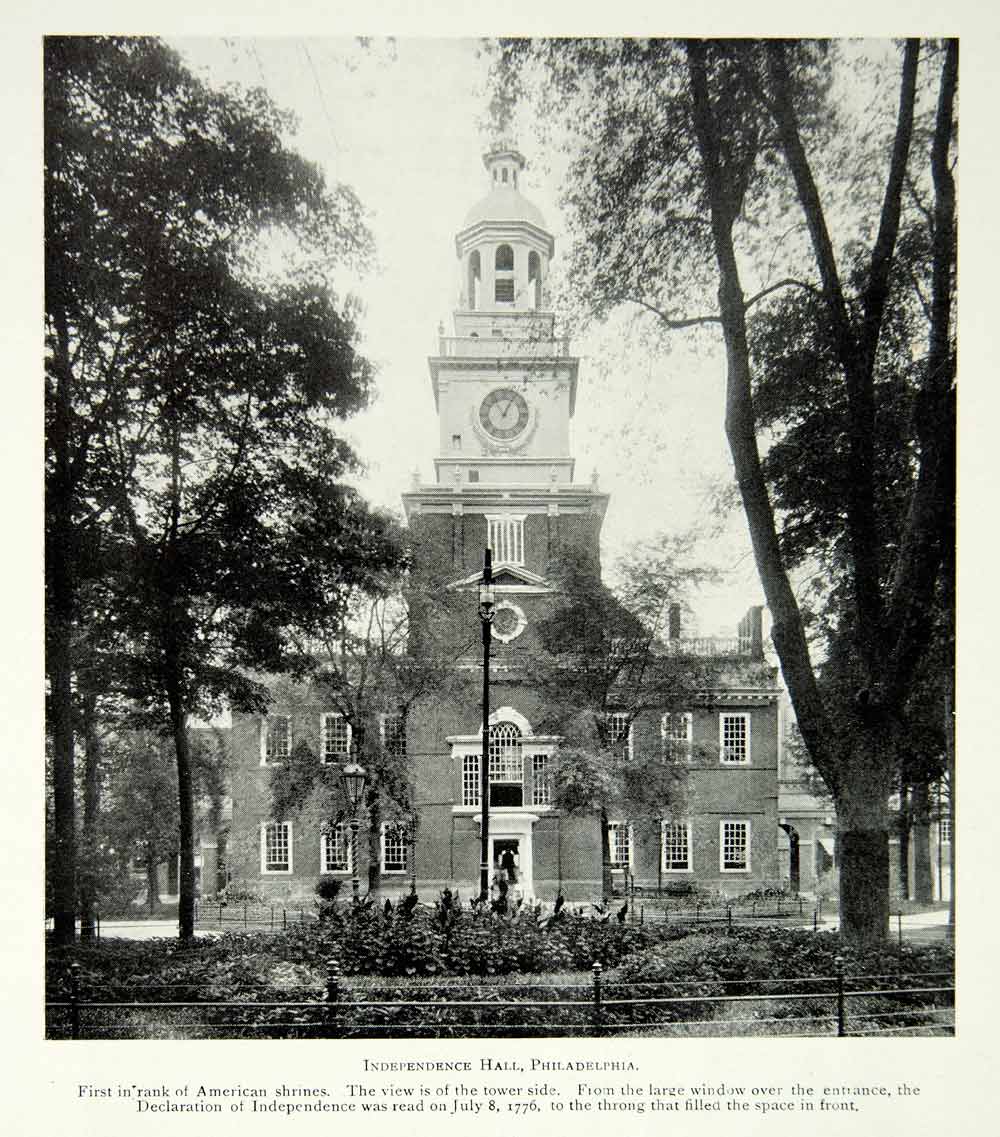 This is an original 1903 black and white halftone print of Independence Hall in Philadelphia.