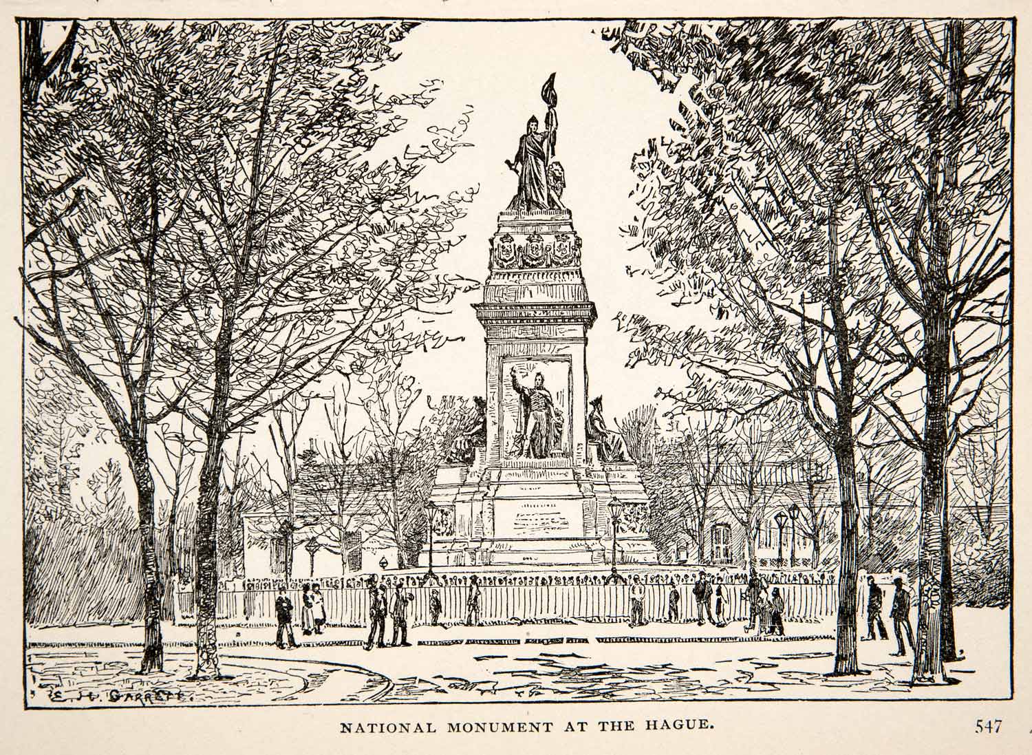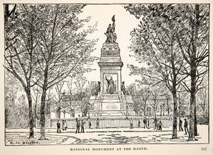 This is an original 1903 black and white relief line-block print of the National Monument at the Hague, in South Holland.