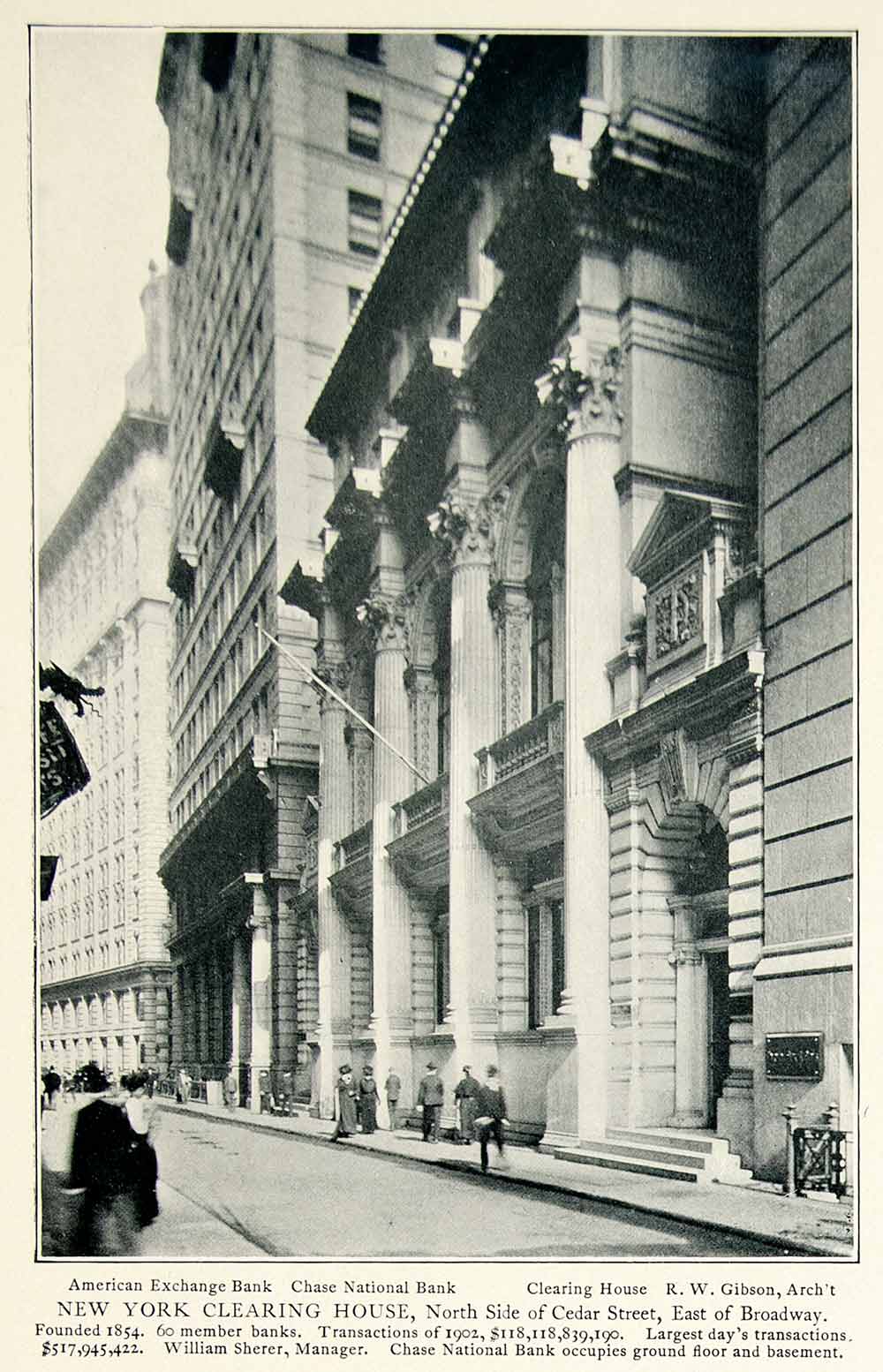 1903 Print New York Clearing House Chase Bank Gibson Manhattan Exchange NYV1