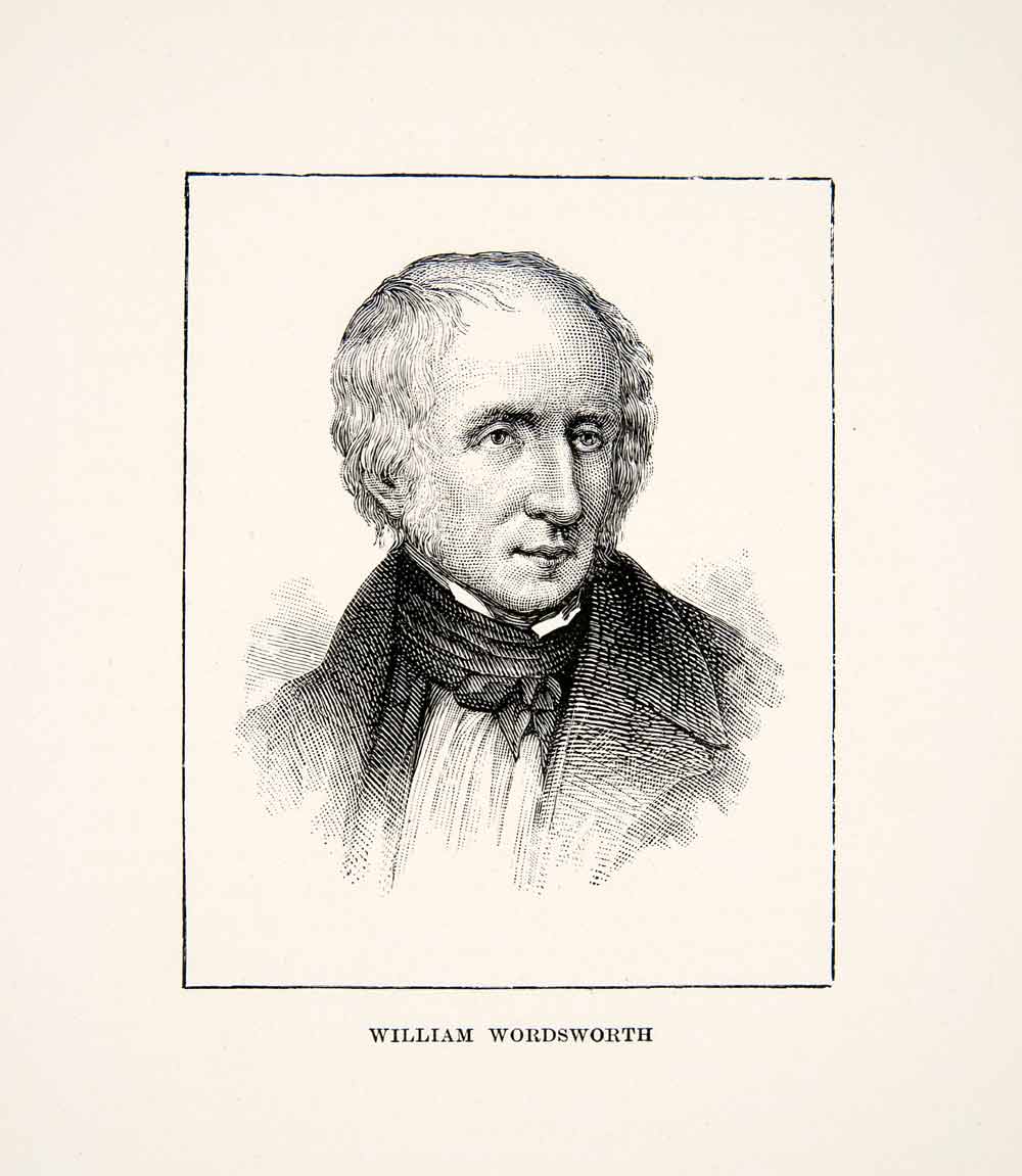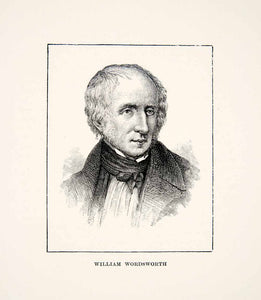 This is an original 1903 black and white relief line-block print of a portrait of British romantic poet, William Wordsworth.