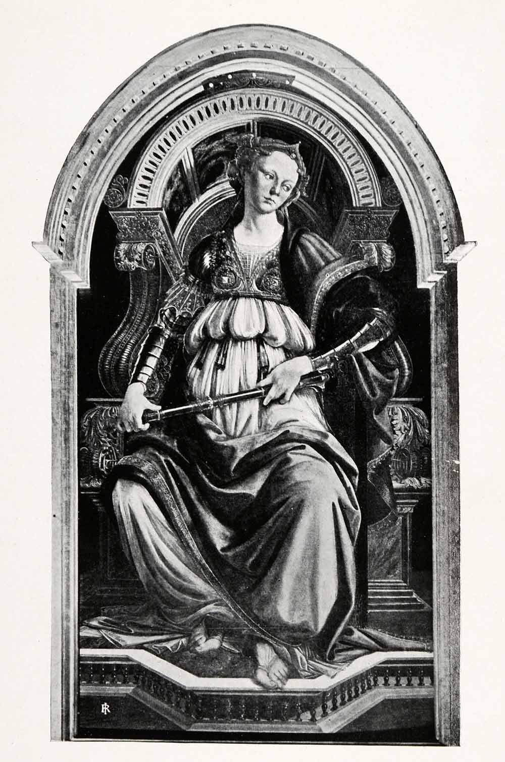 This is an original 1903 halftone print of the painting, "Fortitude." The original artwork had been held in the Uffizi Gallery in Florence.