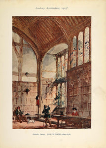 This is an original 1903 color print of the interior of a Tudor mansion in Surrey, England by the famous British lithographer, Joseph Nash.