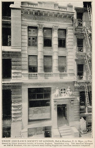 This is an original 1903 halftone print of the Union Assurance Society of London building at 35 Pine Street in New York City. Hall & Henshaw, U.S. Managers. Please note that there is printing on the reverse.