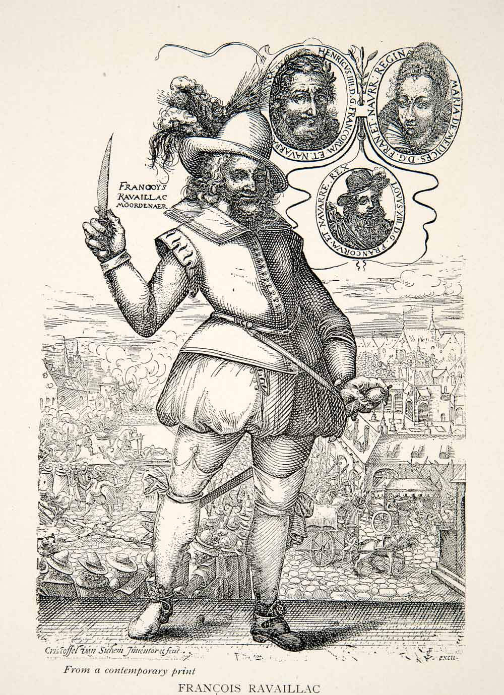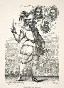 This is an original 1903 black and white wood engraving of a portrait of Franois Ravaillac who was the man who murdered King Henry IV of France.