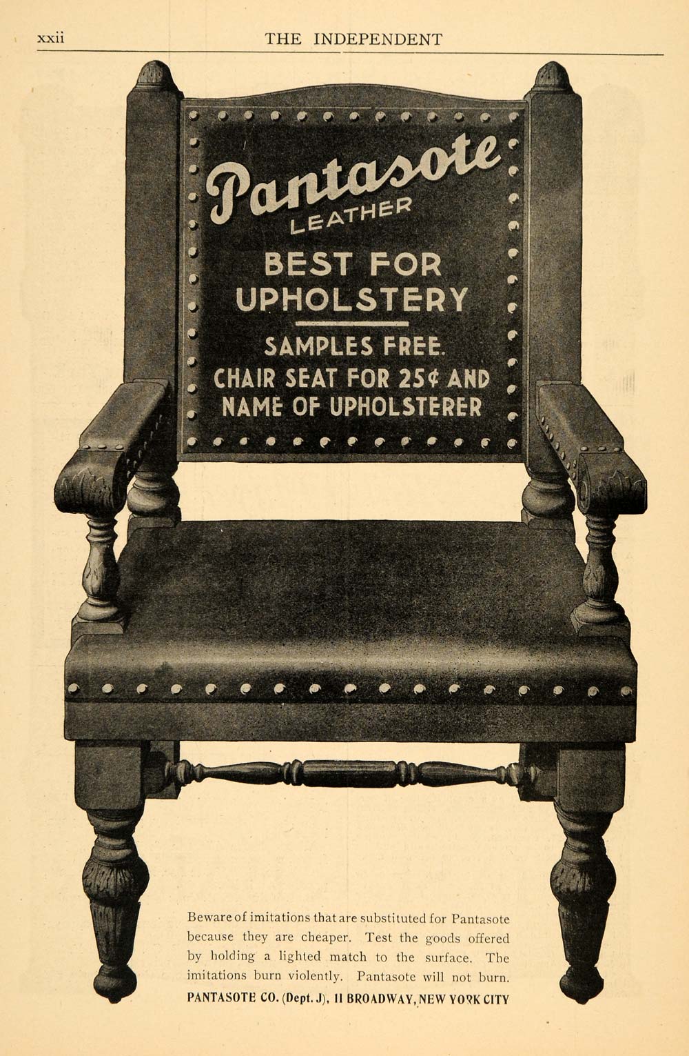This is an original 1904 black and white print ad for the Pantasote Leather Upholstery from Pantasote Company located at 11 Broadway, New York.