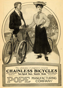 1904 Ad Pope Chainless Bicycles Coaster Break Two Speed Hartford ARG1