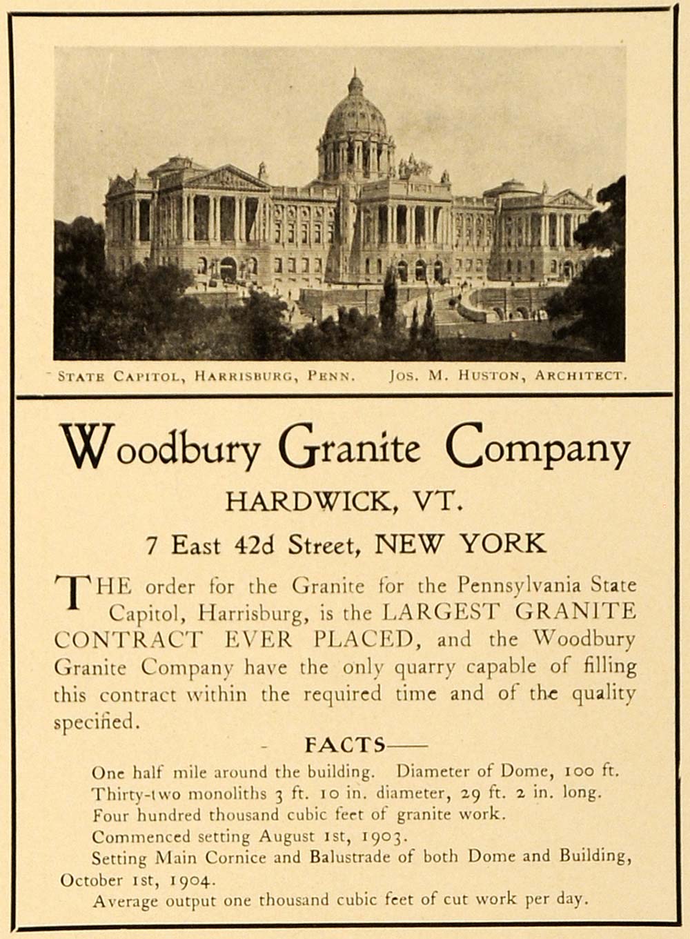 1904 Ad Woodbury Granite Pennsylvania State Capitol Joseph Huston ARC3