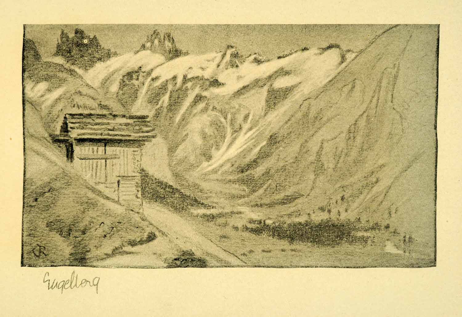 This is an original 1904 black and white halftone print of a pencil sketch of "Engelberg," by Edith Rawnsley. Engelberg is a Swiss municipality known for its skiing.