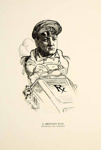 This is an original 1904 black and white in-text lithograph illustrated by O.E. Cesare of B. Brindley Eads, a prominent physician and surgeon from Chicago.