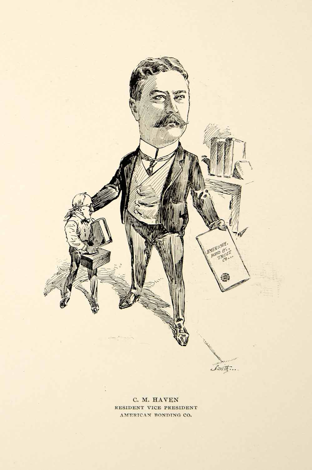 This is an original 1904 black and white in-text lithograph illustrated by E. Bert Smith of C.M. Haven, the Resident Vice President of the American Bonding Company in Chicago.