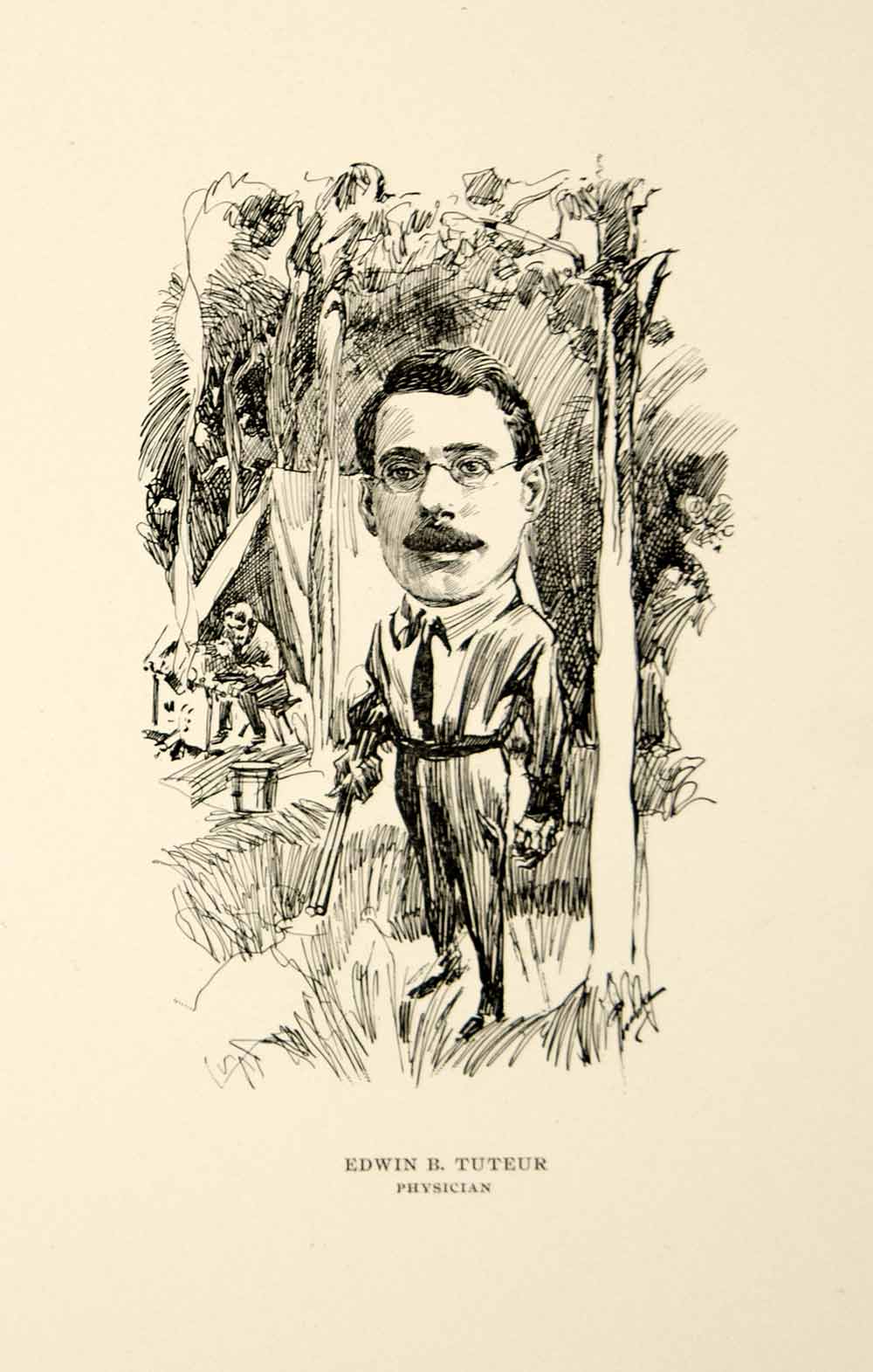 This is an original 1904 black and white in-text lithograph illustrated by H.A. Thiede of Edwin B. Tuteur, a physician from Chicago.