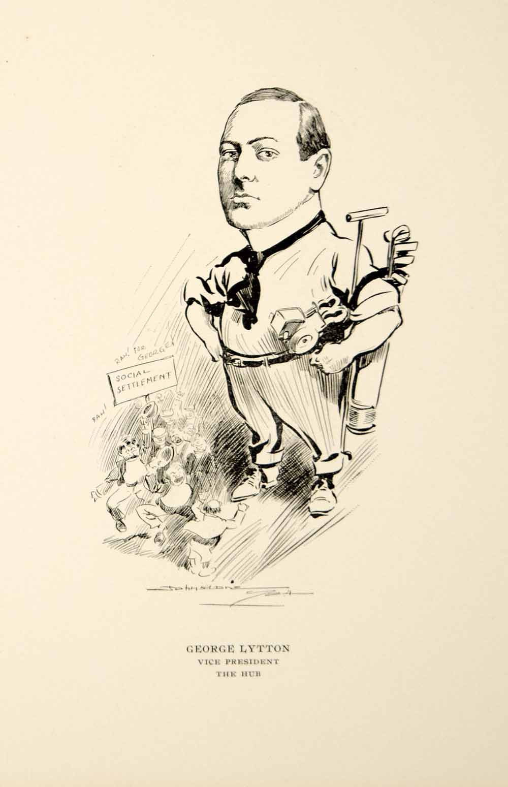 This is an original 1904 black and white in-text lithograph illustration by W.B. Johnstone of George Lytton, the Vice President the The Hub in Chicago, Illinois.