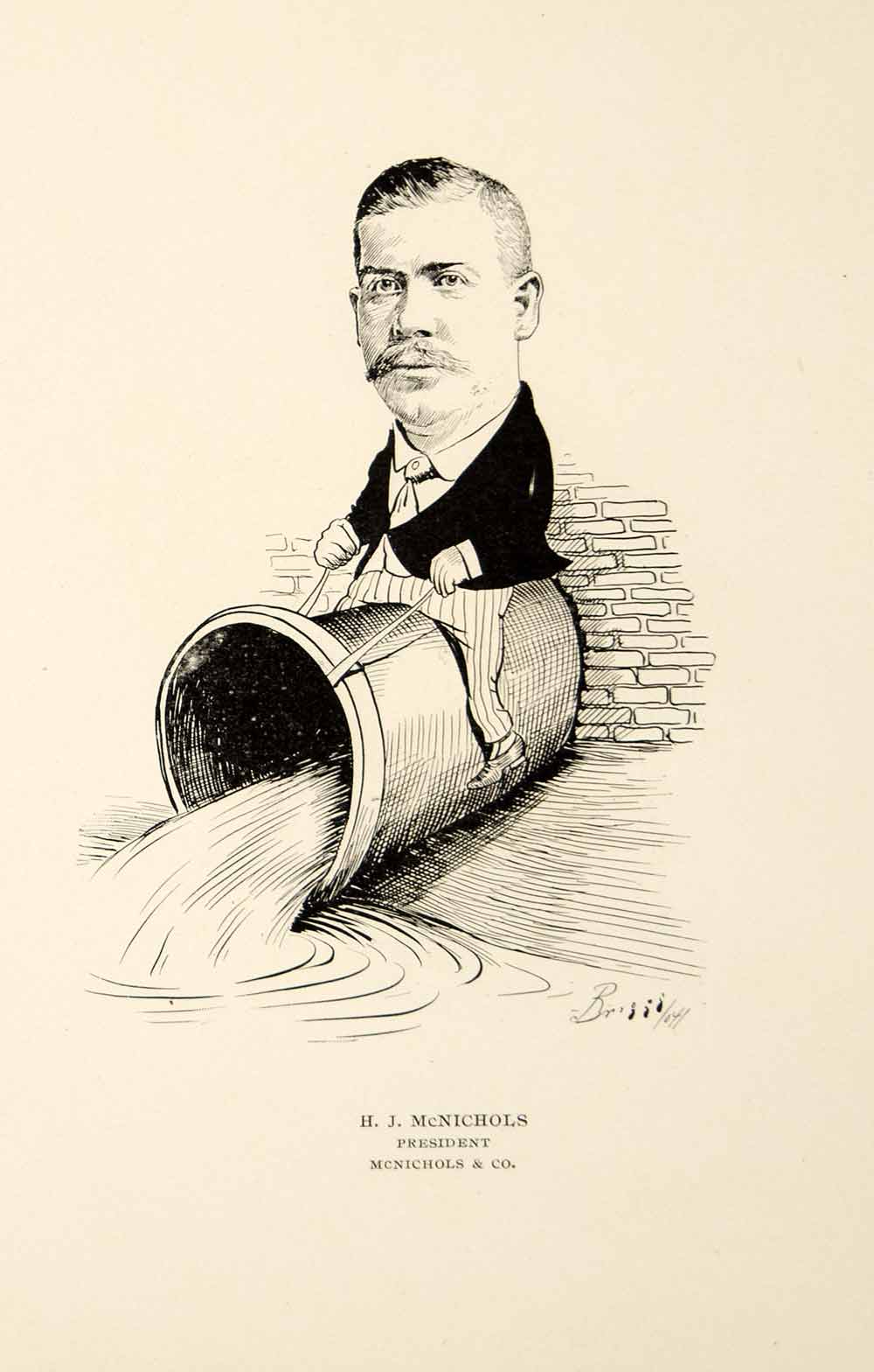 This is an original 1904 black and white in-text lithograph illustration by C.A. Briggs of H.J. McNichols, the President of the McNichols & Co. in Chicago, Illinois.