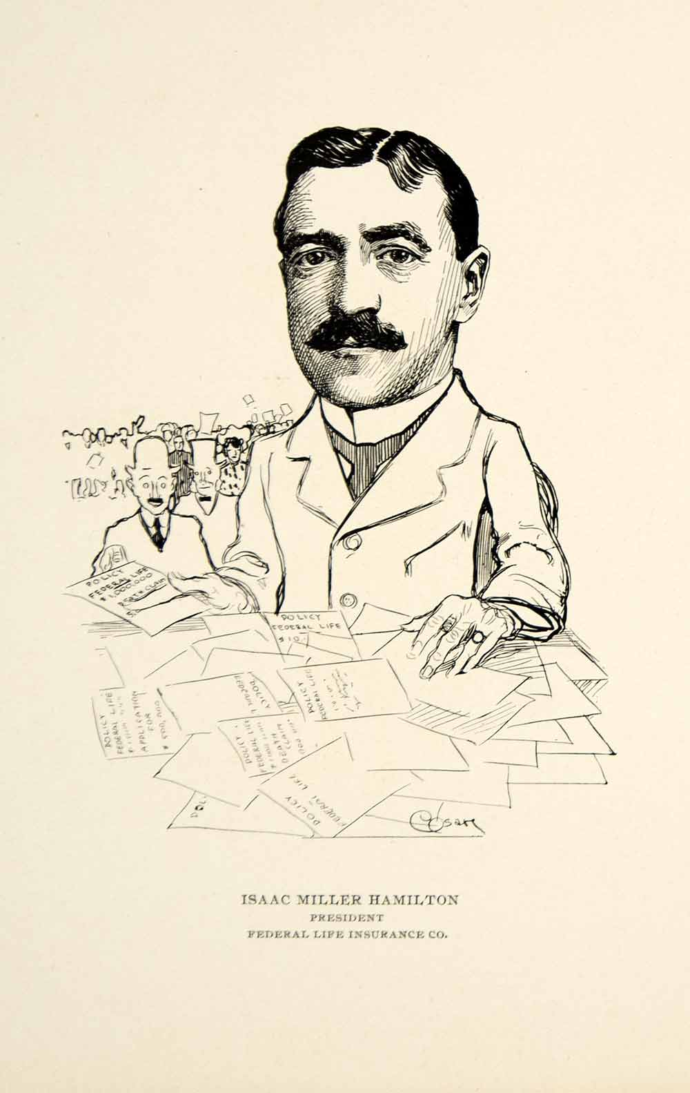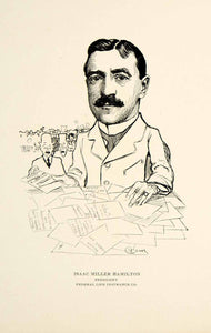 This is an original 1904 black and white in-text lithograph illustration by O.E. Cesare of Isaac Miller Hamilton, the President of the Federal Life Insurance Company, from Chicago, Illinois.