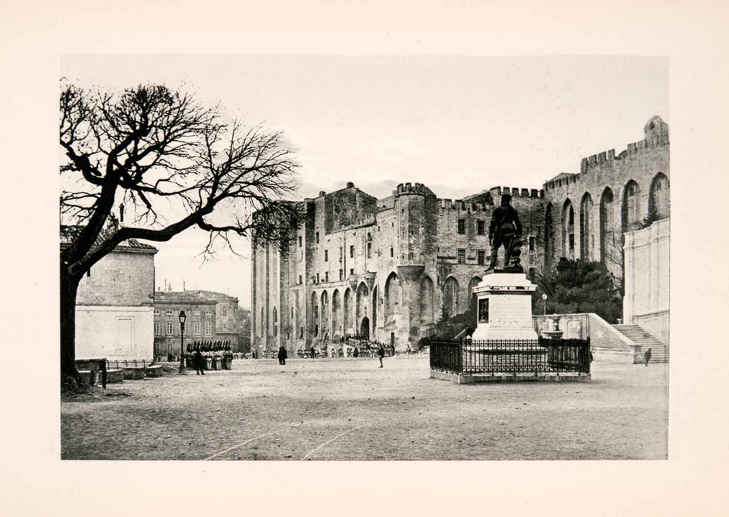 This is an original 1904 black and white photogravure of the famous and historically significant castle located in Avignon, France. During the papal schisms beginning in the 14th century, it was the seat of many a pope. The entire city is classified as a UNESCO World Heritage Site, and its famous bridge is the location sung in the popular children's song