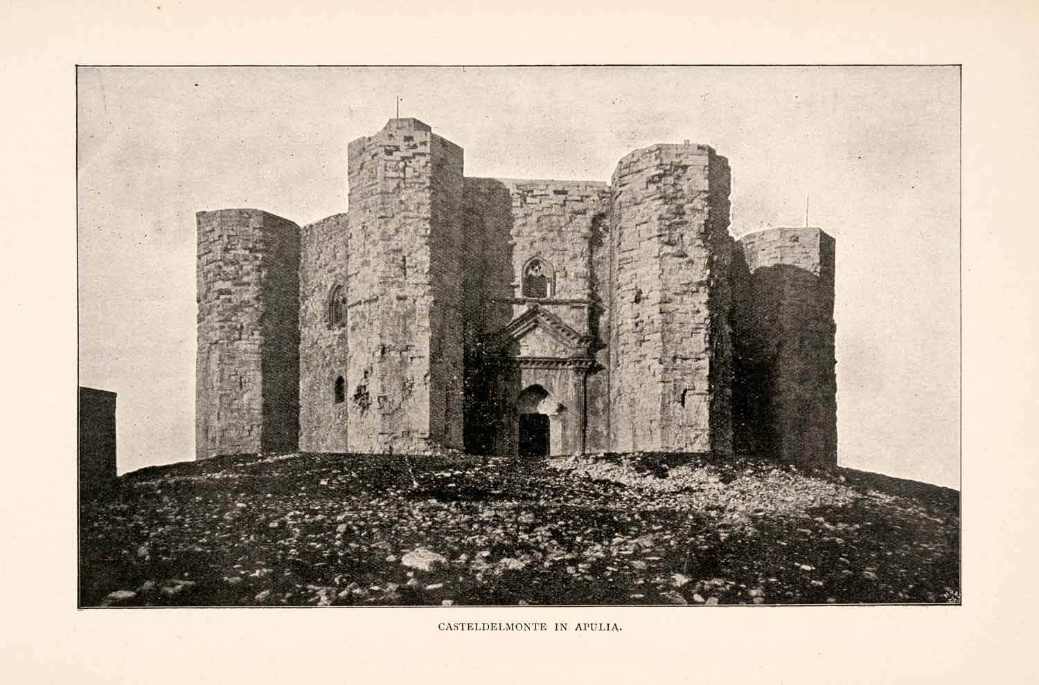This is an original 1904 halftone print of Castel del Monte in Apulia, Italy. It was build by Frederick II who was the Holy Roman Emperor during the 1240's.