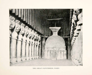 This is an original 1904 black and white halftone print of the great cave temple in Karli (Karla) in Mumbai, India.