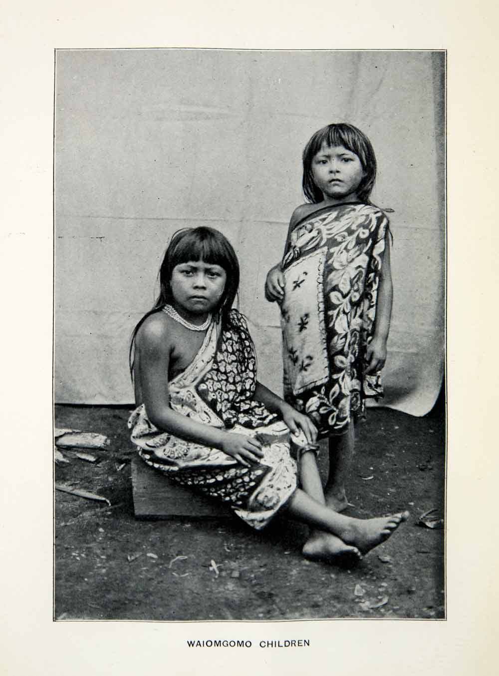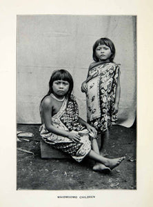 This is an original 1904 black and white halftone print of Waiomgomo children of Venezuela in traditional attire.