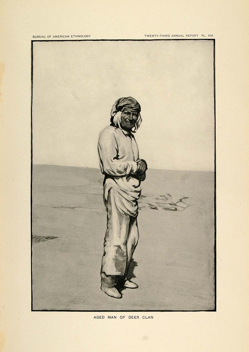 This is an original 1904 halftone print portrait of an old Zuni man of the Deer Clan.