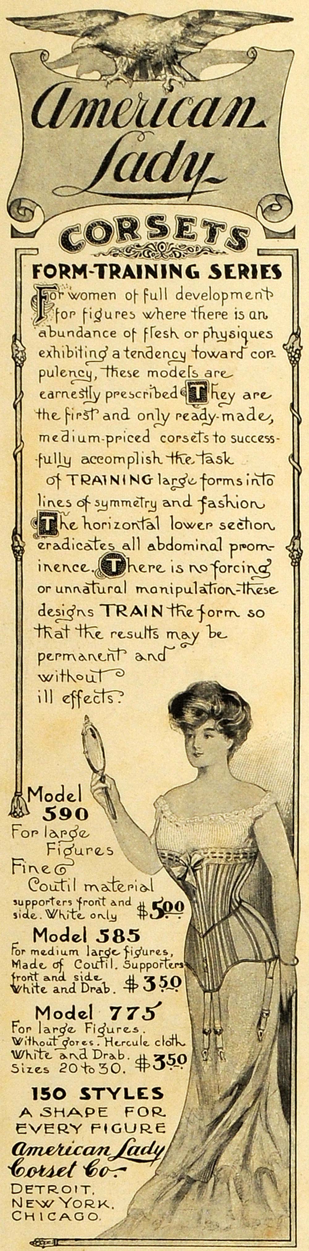 Keywords specific to this image: Vintage Advertising, waist, curves, buttocks, bosom, figure, fashionable, style, undergarment, cinch, cinching, lace, coutil, fabric, support, eagle