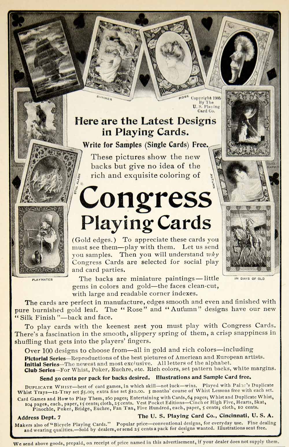 This is an original 1905 black and white print ad for Congress Playing Card brand that was made by the U.S. Playing Card Company.