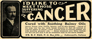 This is a small original 1905 black and white print ad for the Soothing Balmy Oils for skin diseases from Dr. B. F. Bye located in Indianapolis, Indiana.